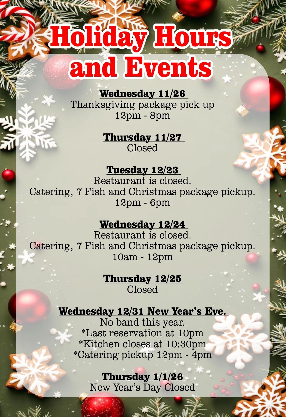 Holiday Hours and Events
